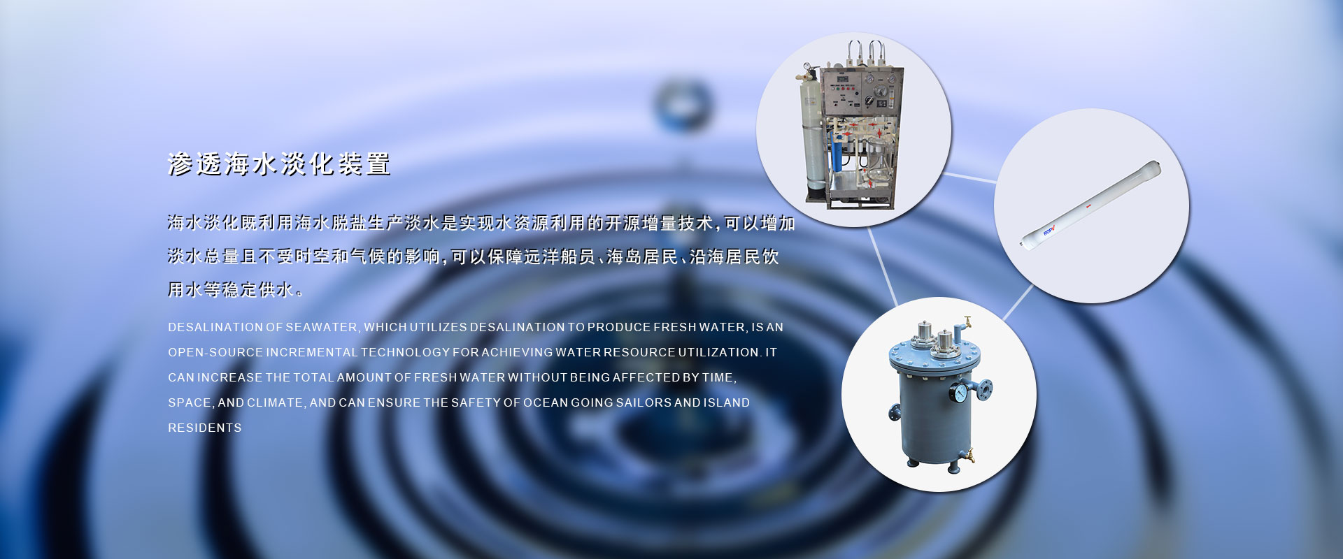 在過(guò)去的17年里我們?yōu)榇疤峁┖KO(shè)備解決了因船的續(xù)航長(zhǎng)而不能解決的淡水問題,全球的水資源越來(lái)越少,我們以改善遠(yuǎn)洋船員、海島居民的生活水資源為已任,以科技創(chuàng)新、誠(chéng)信經(jīng)營(yíng)為核心競(jìng)爭(zhēng)力。